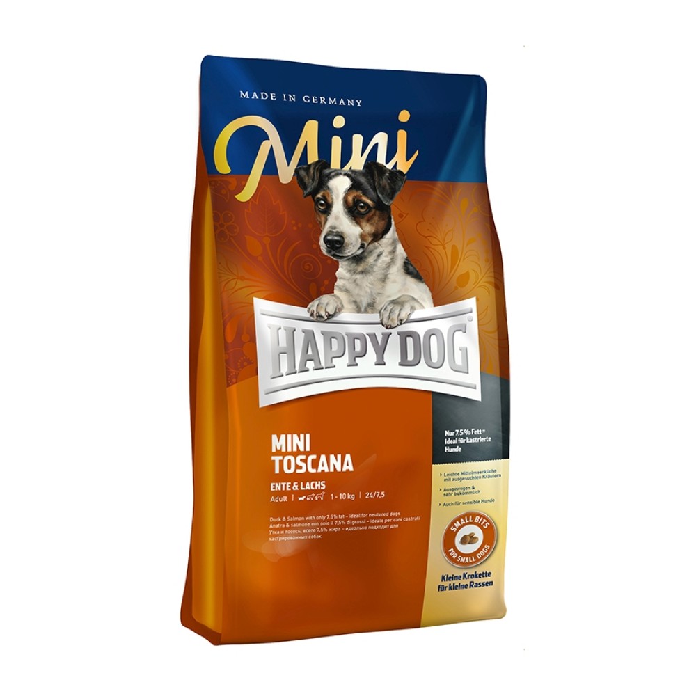 Μόνο το Happy Dog Mini Toscana προσφέρει αυτή τη μοναδική ποικιλία συστατικών και σε συνδυασμό με το Happy Dog Natural Life Concept? με συνταγές από φυσικά συστατικά, το Mini Toscana είναι ιδανικό για μια υγιεινή διατροφή για ιδιαίτερα ευαίσθητους σκύλους μικρόσωμων φυλών. λόγω της μέτριας περιεκτικότητας σε λιπαρές ουσίες 7,5% και 24% πρωτεΐνη, είναι ιδανικό και για στειρωμένους σκύλους.