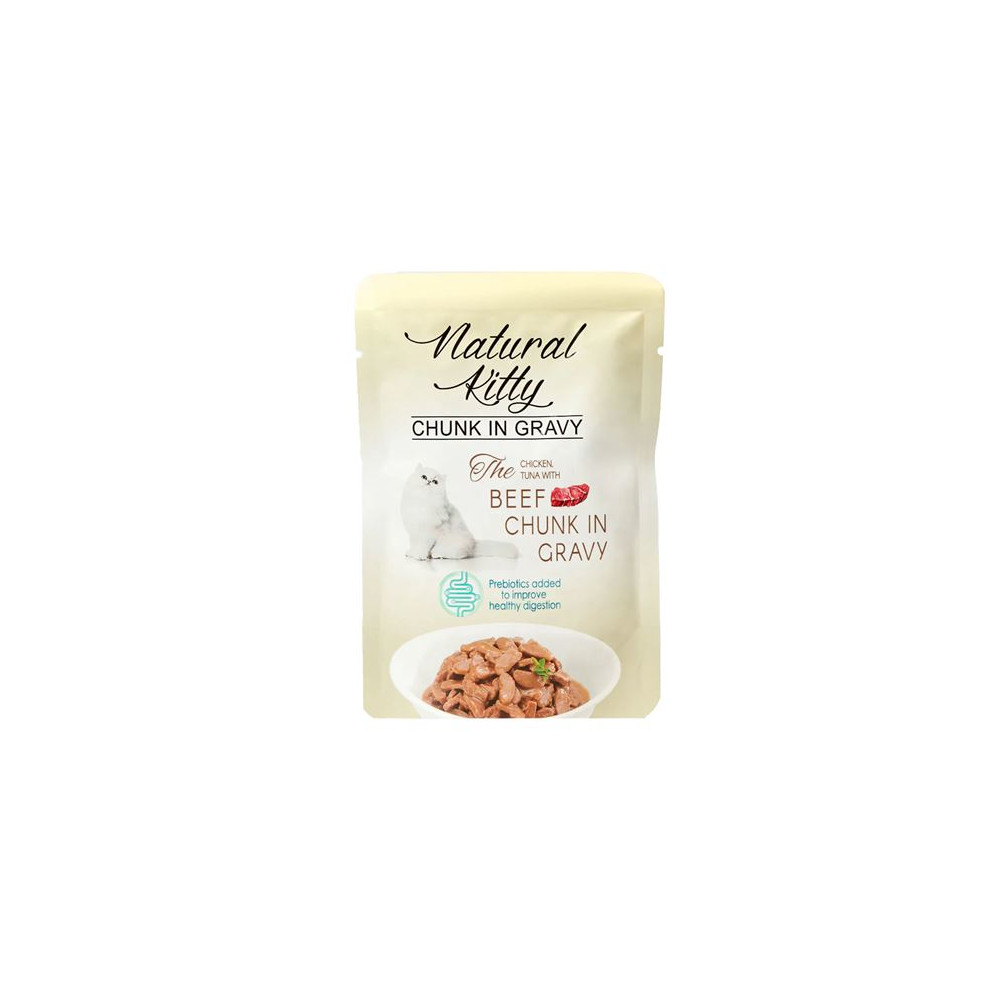 NATURAL KITTY CHICKEN TUNA BEEF GRAVY 85GR